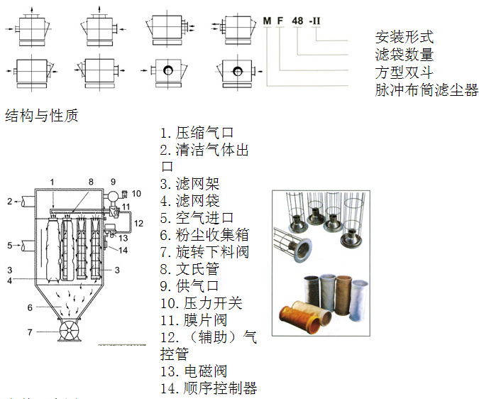 MF系列脈沖布筒濾塵器的詳細資料:積附在濾袋外壁的粉塵不斷增加。當阻力在限定(一般為80-120毫米水柱)的范圍內(nèi),就要清除積附在濾袋外壁的粉塵,清灰是由控制儀定期順序觸發(fā)各控制閥,開啟脈沖閥,使氣包內(nèi)的壓縮空氣由噴吹管孔噴出(一次風)通過文氏管誘導數(shù)倍于一次風的周圍空氣(二次風)進入濾袋,使濾袋在一瞬間急劇膨脹并伴隨著氣流的反向作用.被抖落的粉塵落入灰門經(jīng)排灰閥排出機體。